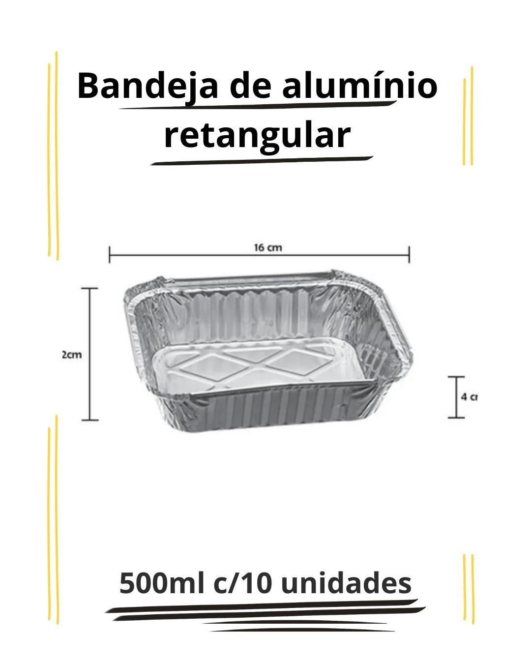 Bandeja de alumínio - retangular - 500ml - c/10 unidades