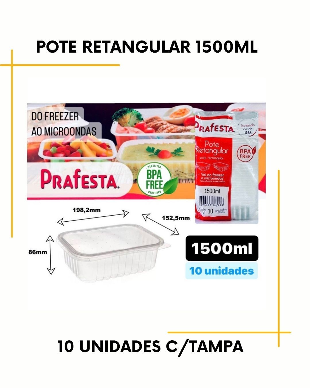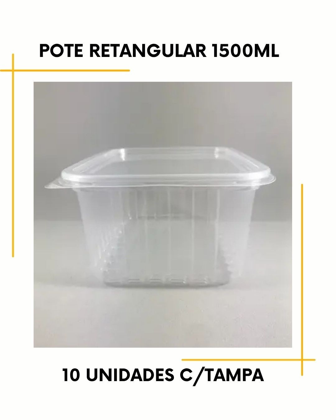 Pote retangular de 1500ml c/10 unidades - descartável ( vai ao Freezer e Micro-ondas )