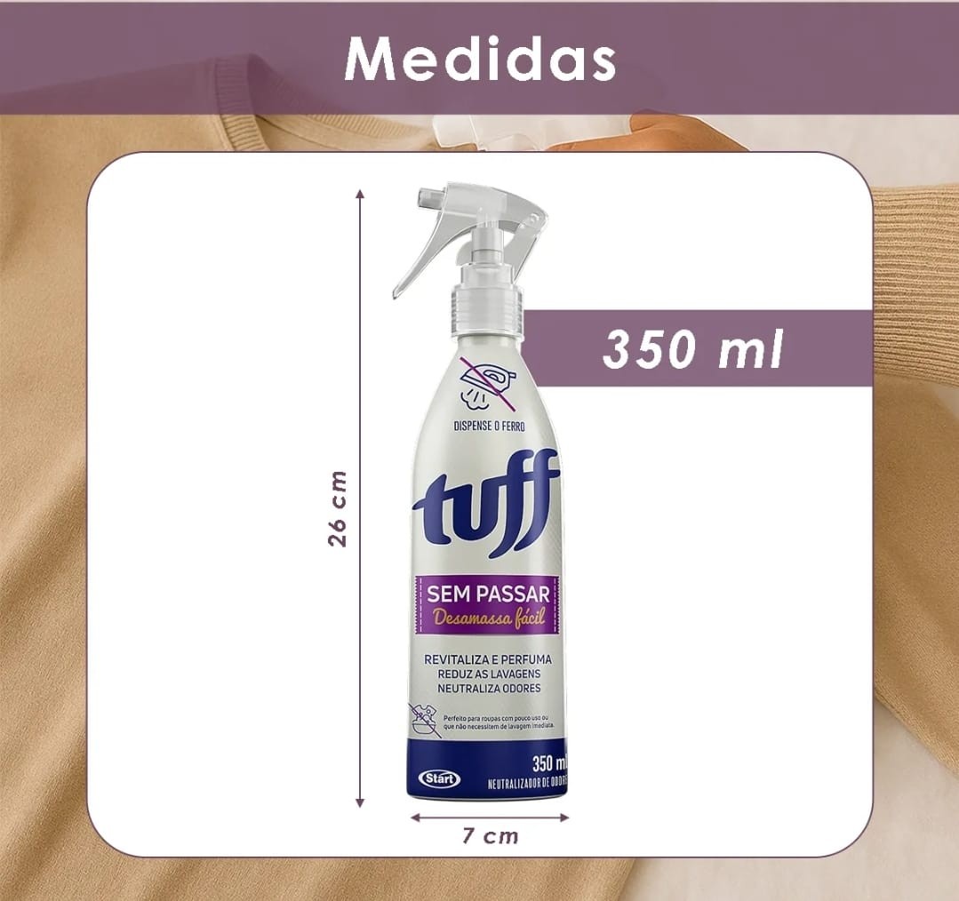 Apresentamos o Sem Passar Tuff Desamassa Fácil Spray 350ml, a solução prática e eficiente para quem busca roupas lisas e bem-cuidadas sem a necessidade de passar com ferro. Este produto chega como uma novidade no nosso site, oferecendo conveniência, agilidade e resultados visíveis em poucos minutos.